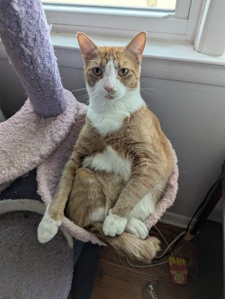 Meet Maple! Born in 2023. He loves breakfast, his belly rubbed, and playing with his siblings. He’s a sweet, shy, but playful cat.